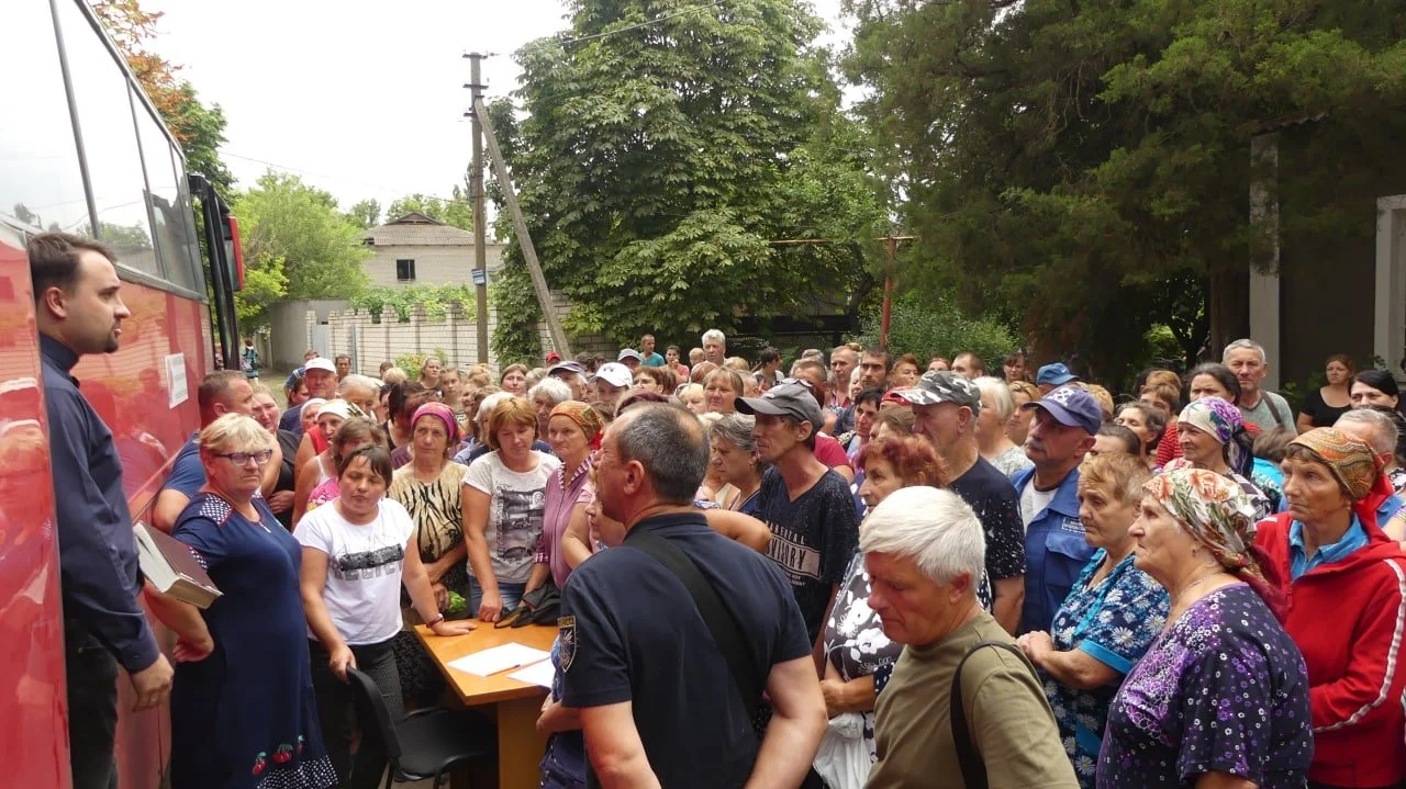 500 families in Beresnequvate in southeastern Ukraine receiving food purchased by PlebeianHelpers and distributed by the Golgotha Church (Rivne)